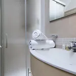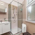 Lägenheten har moderna rum. Eluppvärmd handdukstork, tofflor och hårtork tillhandahålls också.